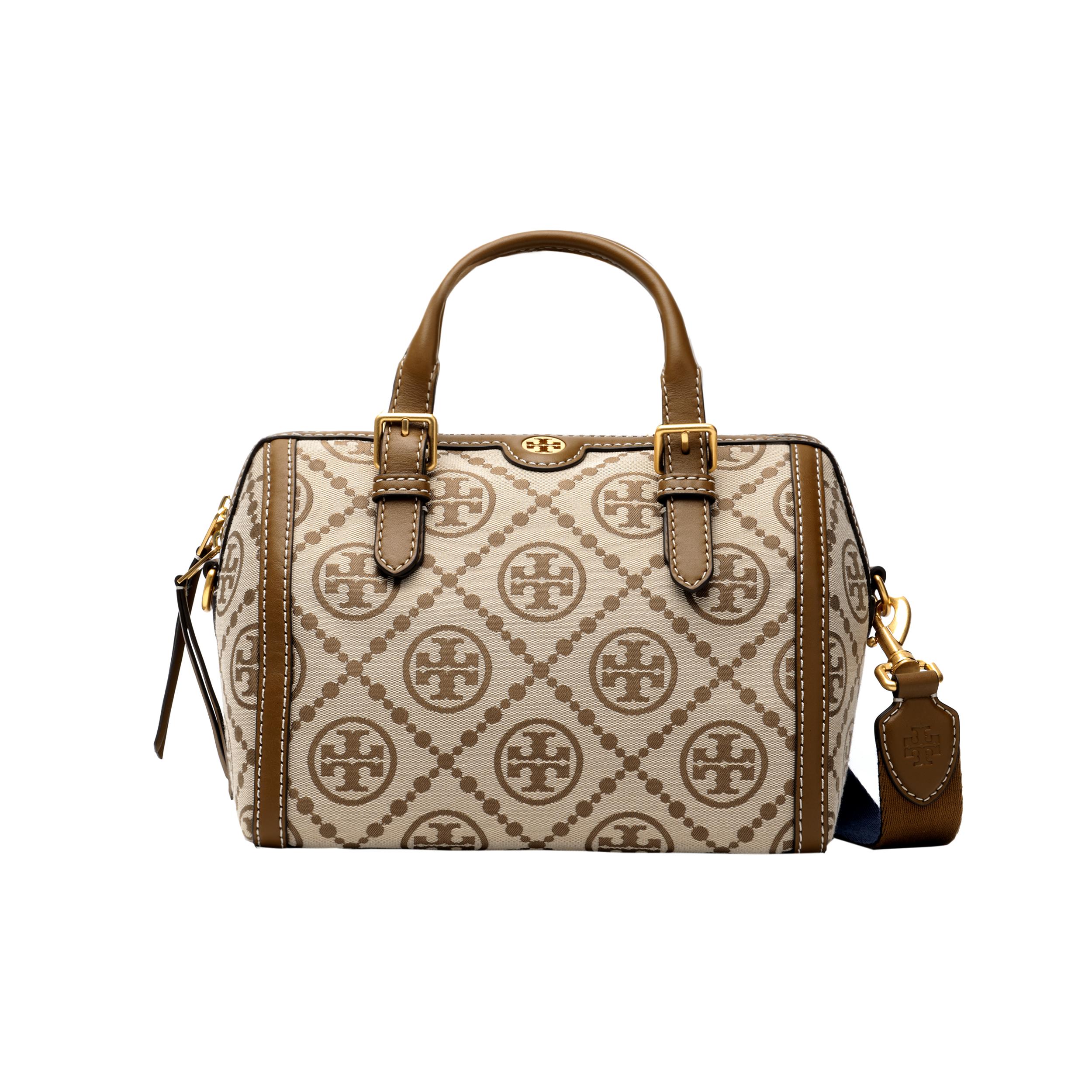 Tory Burch T Monogram Canvas And Leather Boston Bag With Adjustable Shoulder Strap Women handbags Hazelnut-Brown 83970-371