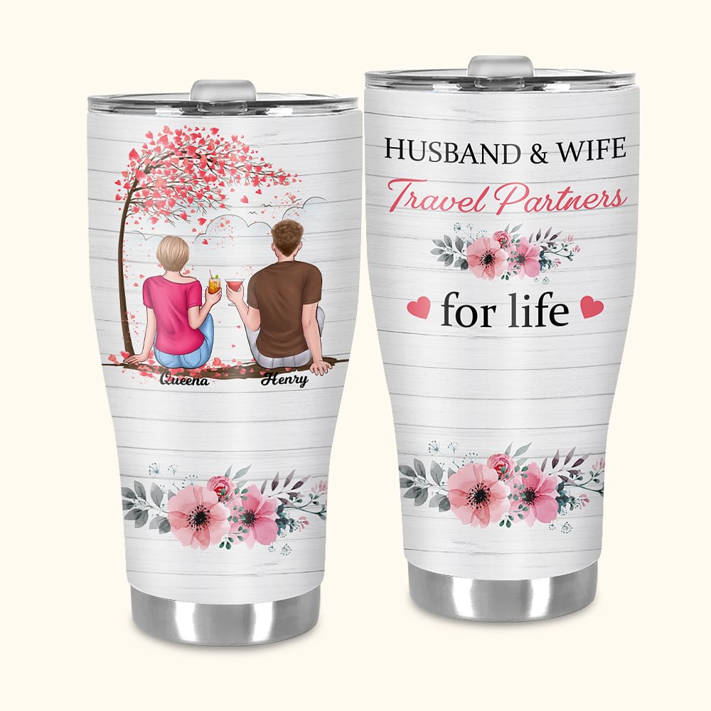Personalizzato Marito e moglie partner di viaggio per la vita Bicchiere curvo con cannuccia Anniversario Regalo di San Valentino per la coppia