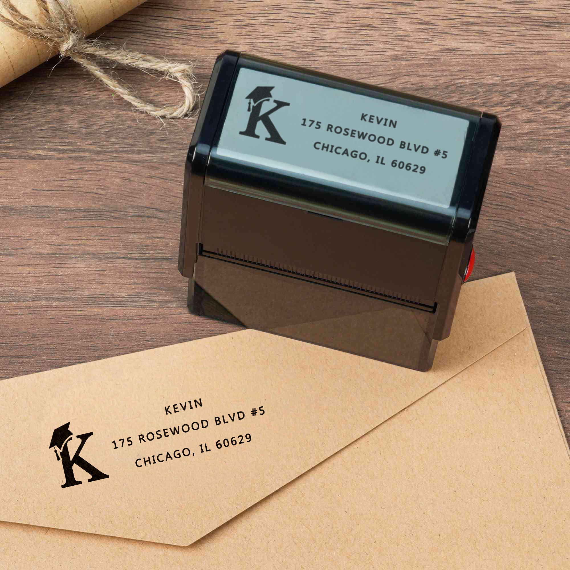 Cappello di laurea personalizzato Timbro portatile autoinchiostrante per indirizzo con inchiostro e nome Regalo di cerimonia di laurea per laureati per uso quotidiano