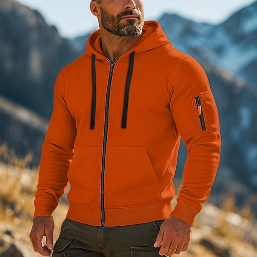 Per uomo Felpa con cappuccio Felpa con cappuccio a zip intera Felpa con cappuccio in pile Felpa con cappuccio tattica Nero Bianco Verde militare Rosso Borgogna Colletto Mao Semplice Cerniera Sport