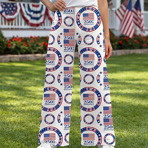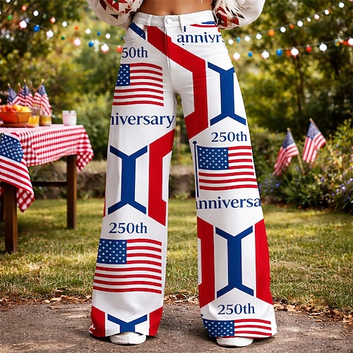 Americano 250 Retrò Vintage Anni '70 Pantaloni Pantaloni a gamba larga Hippie Disco Vita alta Costume Per donna Mascherata 4 Luglio Giorno dell'Indipendenza Semiquincentenario Adulti Pantaloni
