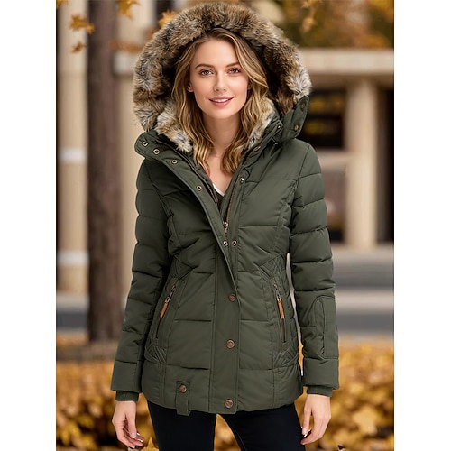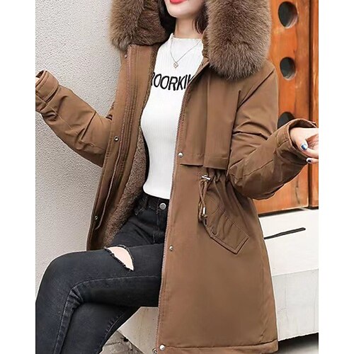 Per donna Cappotto Invernale Parka Caldo Confortevole Bordo in pelliccia Cerniera Tasca Casual Semplice All'aperto Vacanza Uscire Weekend Lungo Con Cappuccio Vestibilità regolare Manica Lunga