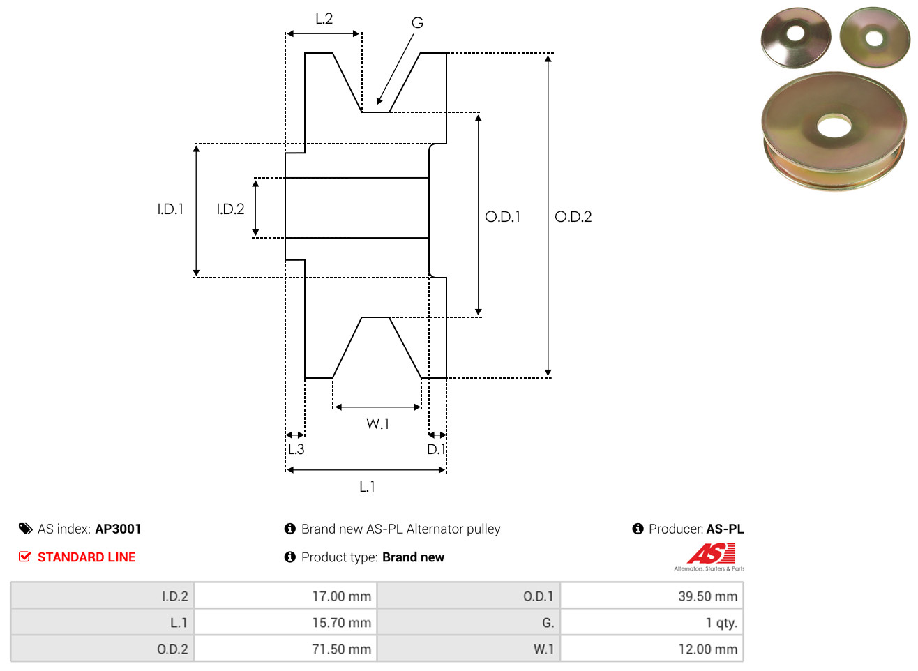 AS-PL Riemenscheibe, Generator AP3001 Universal