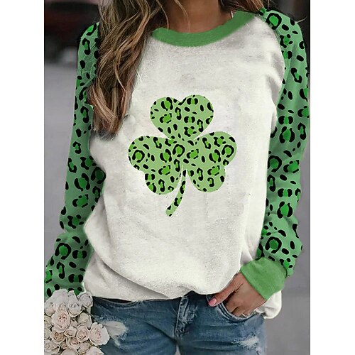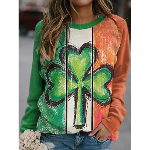 Felpa da donna per il giorno di San Patrizio grafica trifoglio casual manica lunga colletto rotondo top regolari casual stampa vacanza bianca verde autunno inverno