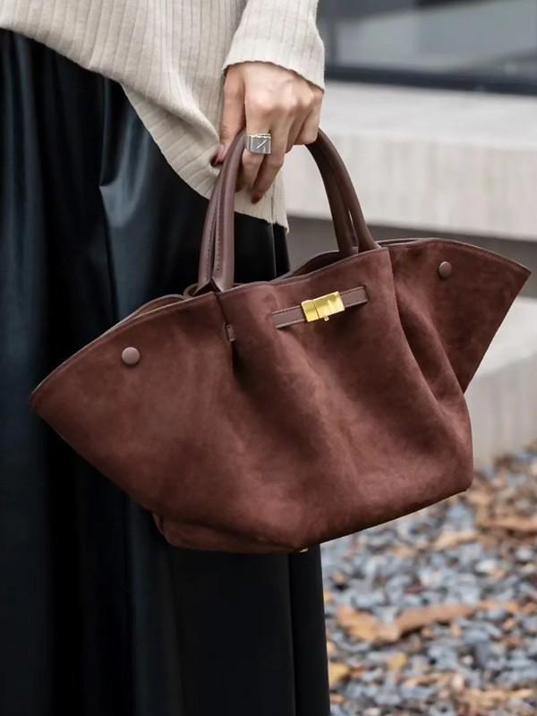 Sac à rabat en daim givré Demellier - Sac à main et sac fourre-tout d'épaule Rétro Automne/Hiver café foncé