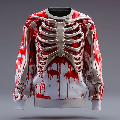 Per uomo 3D Scheletro Felpa Punk Festa Gotico Manica Lunga Girocollo Vacanza Blu Rosso Viola Arancione Verde Girocollo 3D Tutte le stagioni progettista S M L XL XXL XXXL