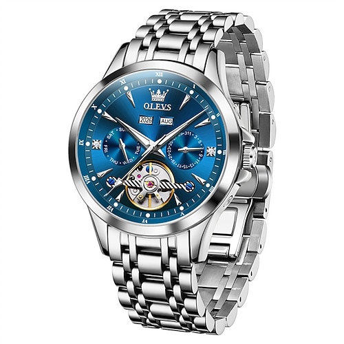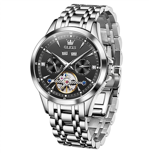 Il nuovo orologio da uomo olevs business è dotato di un calendario perpetuo luminoso, un piccolo orologio meccanico automatico multifunzionale a tre lancette ed è uno scheletro sportivo impermeabile