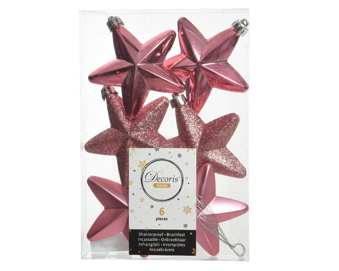 6 Sterne 7cm Christbaumschmuck Kunststoff Weihnachtsbaumschmuck Anhänger pink