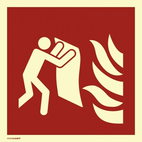 Feuerlöschdecke ISO 7010, Folie, langnachleuchtend, 160-mcd, 148x148 mm