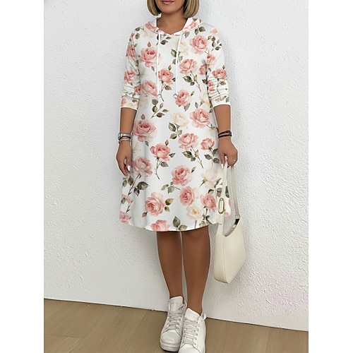 Per donna Mini Abito Abito con Cappuccio Vestito Casual Elegante Moda Moderno Quotidiano All'aperto Weekend Vestibilità regolare Floreale Manica Lunga Con Cappuccio Bianco Primavera Autunno