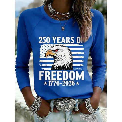 Giorno dell'Indipendenza Americana Per donna Maglietta Grafico Bandiera Americana Vintage Elegante Classico Manica Corta Girocollo Top Regolari Quotidiano Weekend Stampato Blu Nero Bianco Rosa Rosso