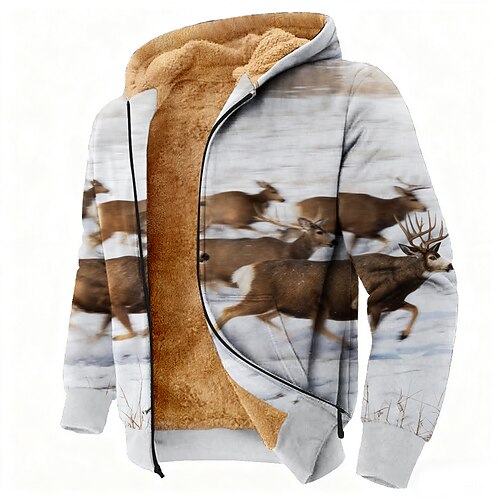 Per uomo Animale Cervo Pile Felpa con Cappuccio Giacca di pelle Felpa Classico Militare Da caccia Manica Lunga Girocollo All'aperto Campeggio Blu chiaro Bianco 1 Bianco Con zip Autunno Inverno