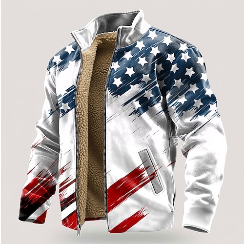 250° anniversario dell'America Per uomo Bandiera Americana Pile Giacca di pelle Felpa Moda Quotidiano Semplice Casual Collo alla coreana Con cerniera All'aperto Vacanza Regalo Uscire Blu Bianco 1 Blu