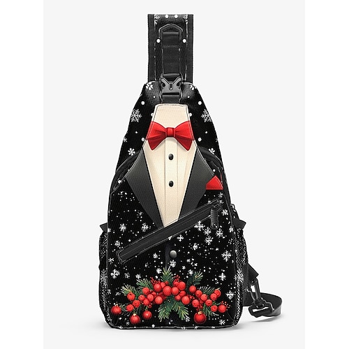 borsa a tracolla natalizia da uomo - poliestere, design multi-fantasia con motivi da smoking e festivi, perfetta per occasioni informali e festive