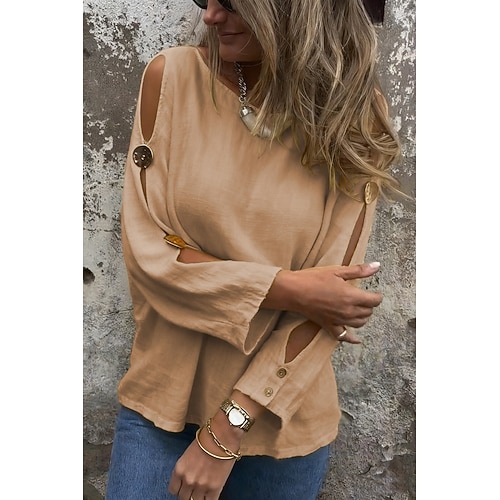 Per donna Camicia popover Camicia casual Blusa Traforato Tinta unica Vacanza Elegante Essenziale Manica Lunga Girocollo Top Regolari Quotidiano All'aperto Ferie Nero Giallo Viola Cachi Estate