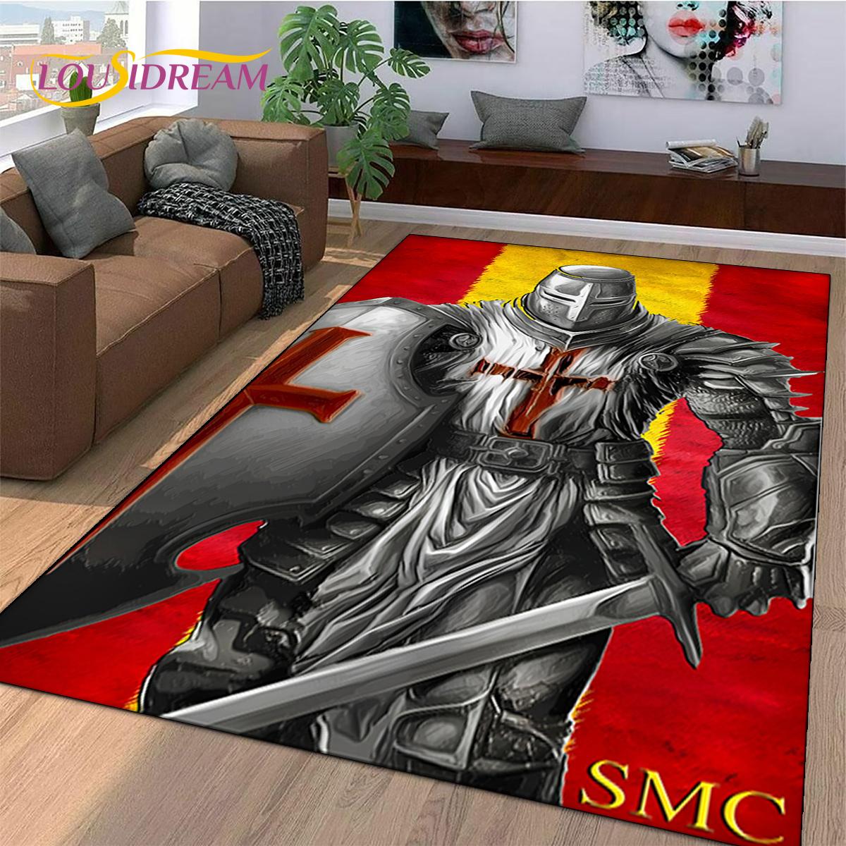 Knight Templar Cavalier Crusaders Cartoon Rug Carpet for Living Room Bedroom Decor,Non-slip Decoration for Sofa Doormat Gift Kid