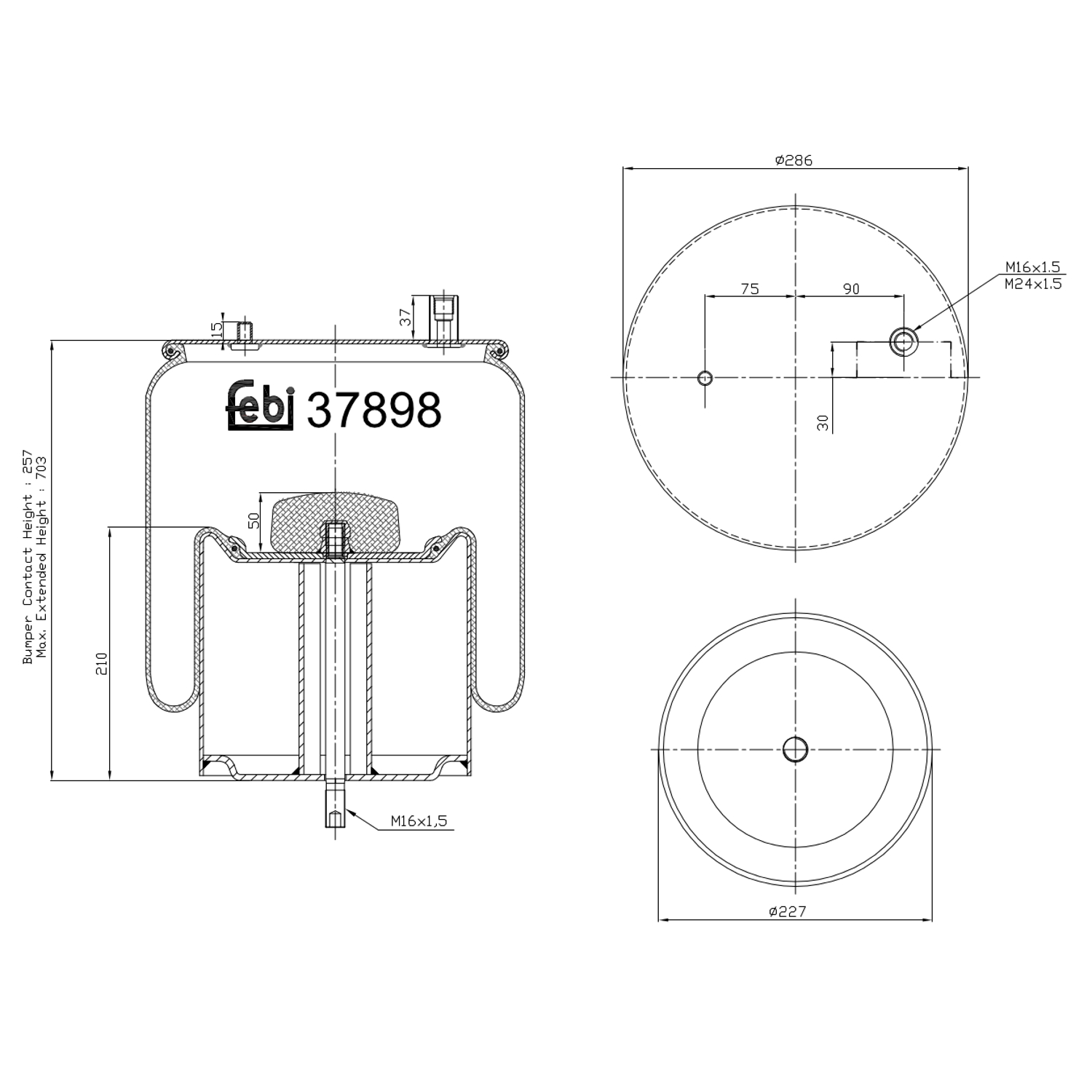 FEBI BILSTEIN Federbalg, Luftfederung 177595 Universal mit Kolben 227mm
