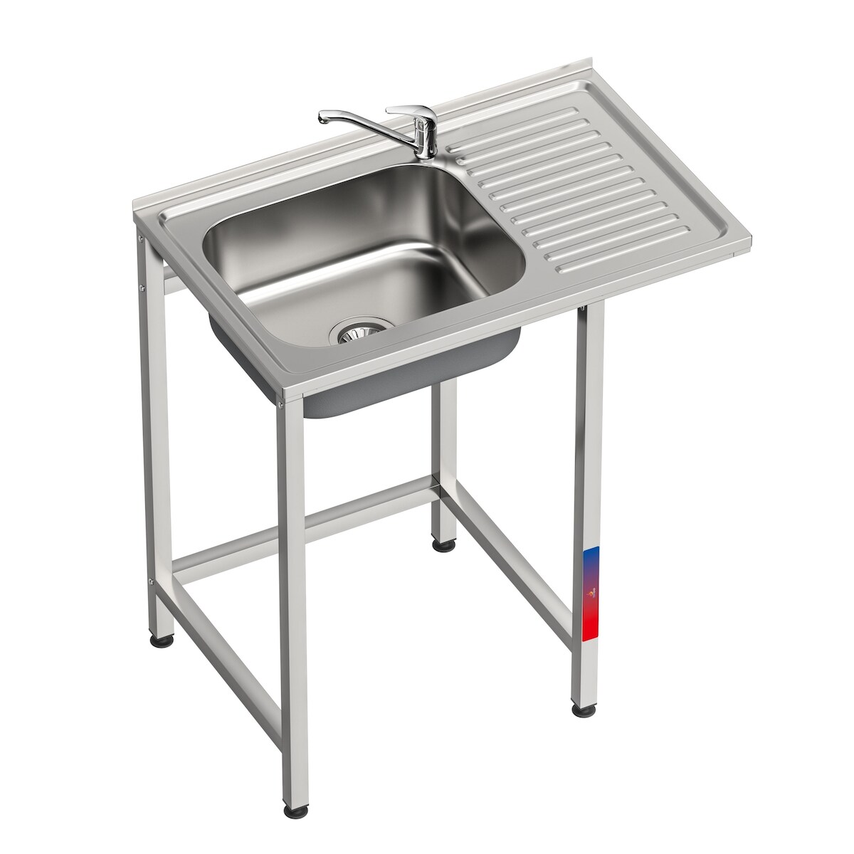 Gasfrit – Unterbau-Spülbecken mit 1 Becken und 1 Abtropffläche, industriell, aus Edelstahl, 800 x 500 x 850 mm.