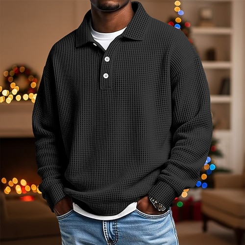 Per uomo Magliette Polo a Nido d'Ape Polo Formale Affari Colletto Polo a Coste Manica Lunga Moda Tinta unica Bottoni Puro Autunno Primavera Autunno Vestibilità comoda Nero Verde Chiaro Verde Blu