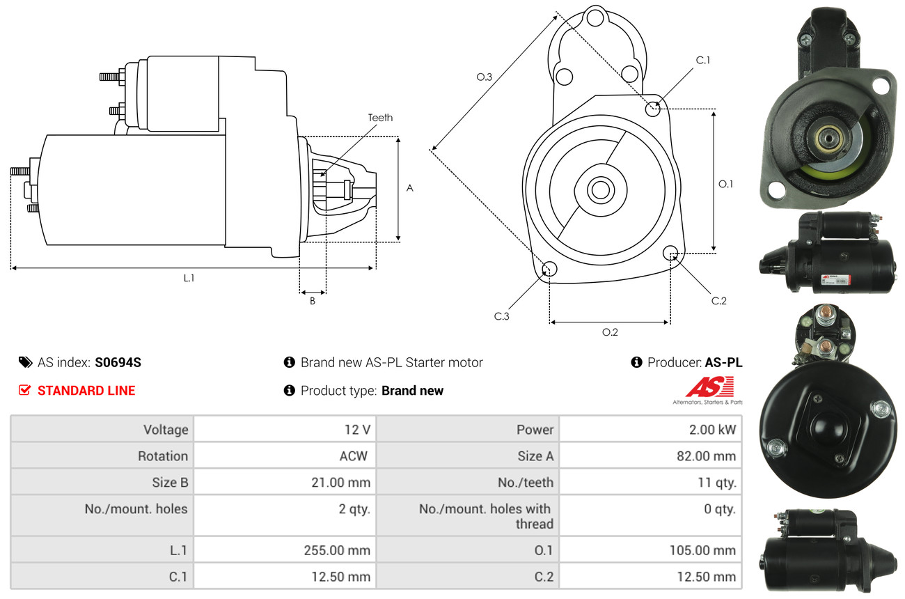 AS-PL Starter S0694S 12V für VW PEUGEOT VOLVO 5417601 833031 5121701501000