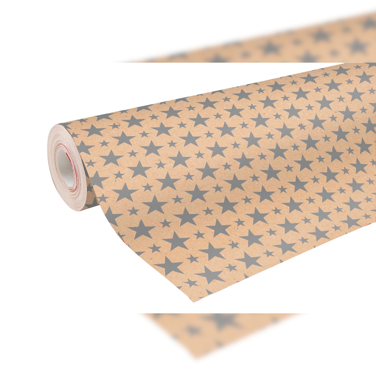 Clairefontaine Geschenkpapierrolle Kraft 70g 50x0,70m, Weihnachten, silberne Sterne - Silber 223801C