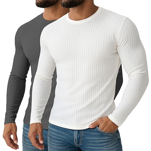 Per uomo Maglietta Canotta Muscolare Maglietta a Maglia a Coste Camicia a Maniche Lunghe Manica Lunga Girocollo Primavera Autunno Tutte le stagioni Tinta unica Semplice Testurizzato Moda Designer