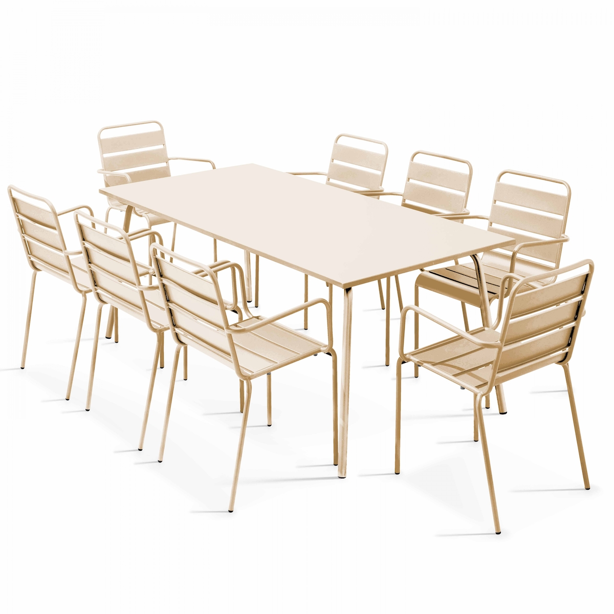 Oviala Business Set aus Gartentisch und 8 Sesseln aus elfenbeinfarbenem Metall - Oviala