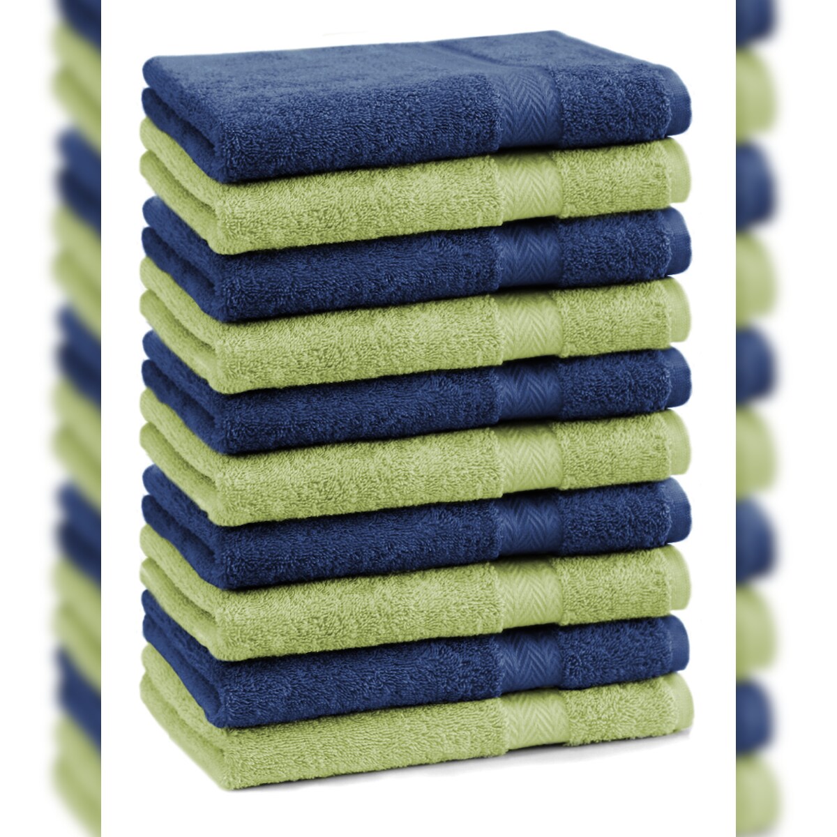 Betz 10 Stück Gästehandtücher PREMIUM 100%Baumwolle Gästetuch-Set 30x50 cm Farbe dunkelblau und apfelgrün