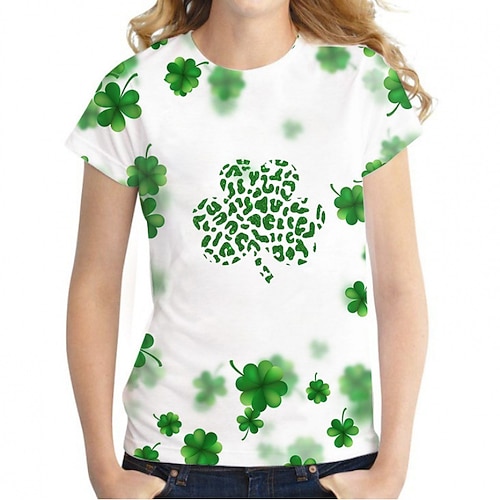 Per donna maglietta Trifoglio Festa di San Patrizio Informale Verde primavera Bianco Verde chiaro Stampa Manica corta Di tendenza Rotonda Standard Primavera estate