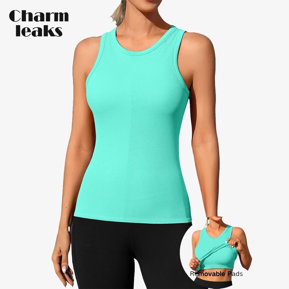 Charmleaks Workout Tank Tops for Women Seamless Full Length Gym Tops Athletic Yoga Top Built in Bra cm army green
