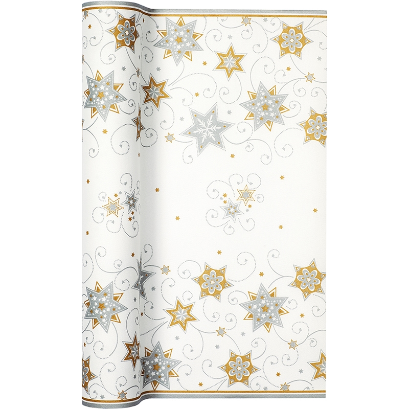 Home Fashion, TL Stars & Swirls silver, Tischläufer, 490 cm x 40 cm, aufgerollt, 1 Stück pro Pack