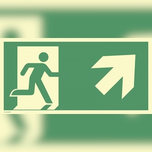 Notausgang rechts aufwärts, ISO 7010, PVC-U selbstklebend, 160-mcd, 400x200 mm