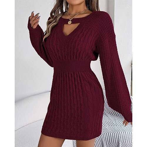 Per donna Mini Abito Abito in maglia Vestito Casual Elegante Moda Moderno Quotidiano All'aperto Spiaggia Vestibilità regolare Semplice Manica Lunga Girocollo Giallo Rosso Grigio Primavera Autunno