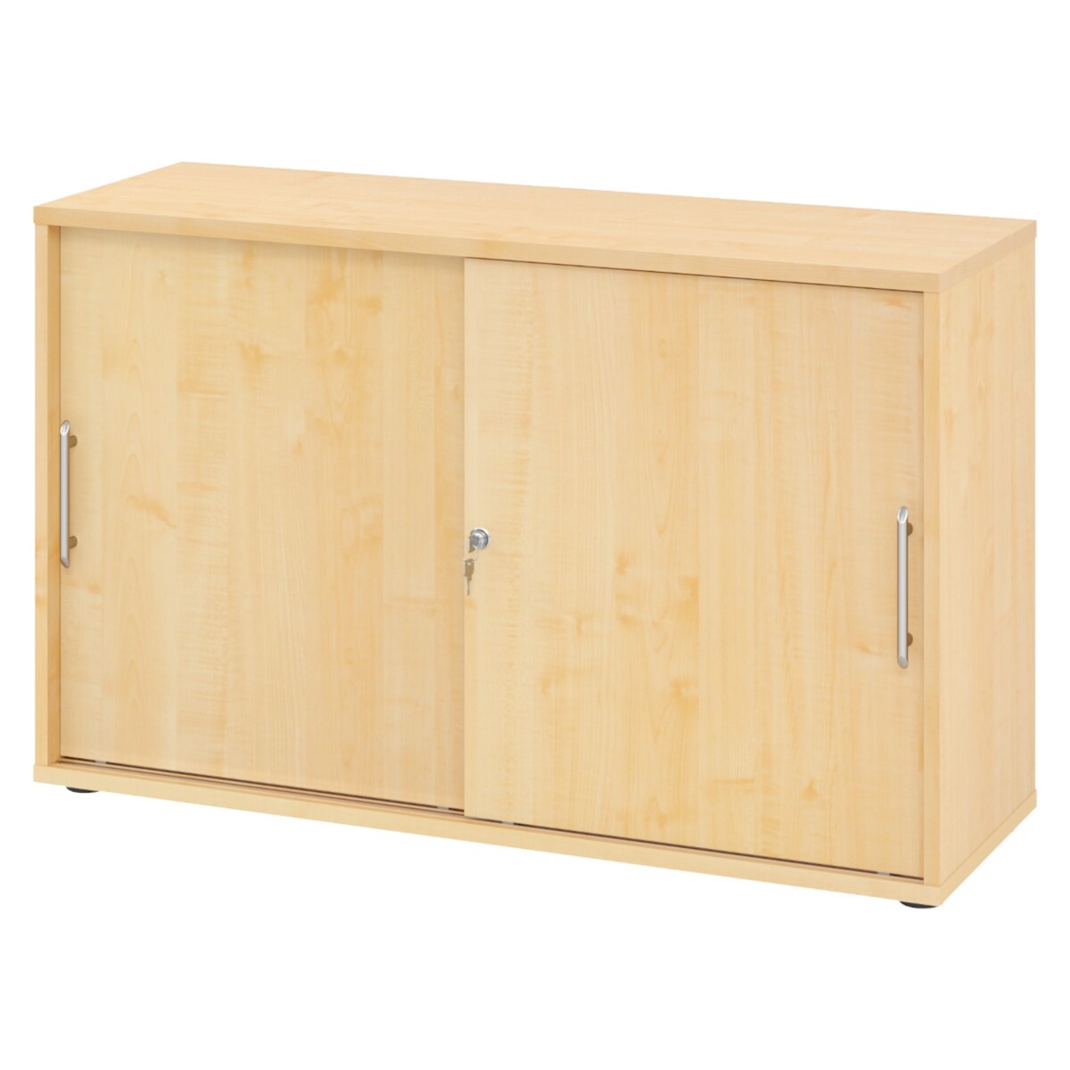 bümö Schiebetürenschrank 2OH - Aktenschrank abschließbar, Sideboard Schrank mit Schiebetüren in Ahorn, Chromgriff - Büroschrank aus Holz mit