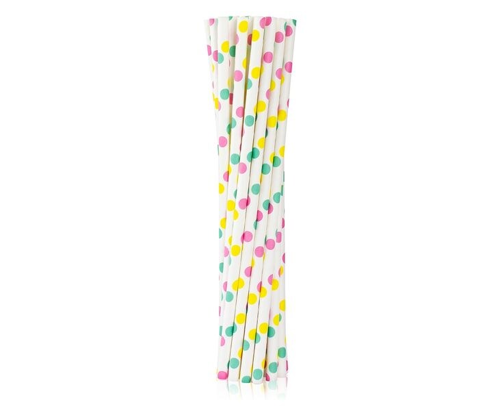 12 Trinkhalme aus Papier Pastell Punkte rosa grün gelb