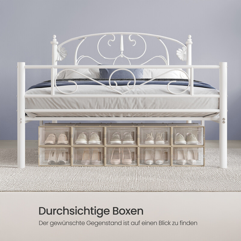 SONGMICSHOME Schuhbox 12er Set, Schuh-Organizer aus Kunststoff, für Schuhe bis Größe 44, faltbar und stapelbar, transparent-anthrazitblau