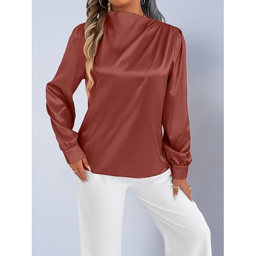 Per donna Camicia Camicia in raso Camicia casual Arricciato Semplice Elegante Essenziale Classico Manica Lunga Collo Alto Top Regolari Quotidiano Ferie Uscire Nero Bianco Vino Rosso Arancione