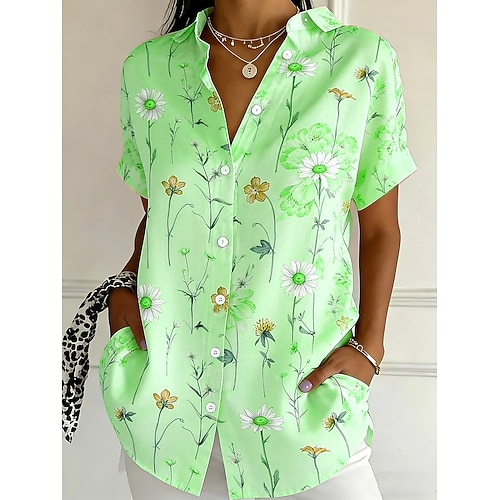 Per donna Camicia Blusa Bottoni Stampato Floreale Elegante Casual Manica Corta Colletto a Camicia Top Regolari Quotidiano Blu Verde chiaro Rosa Estate Primavera