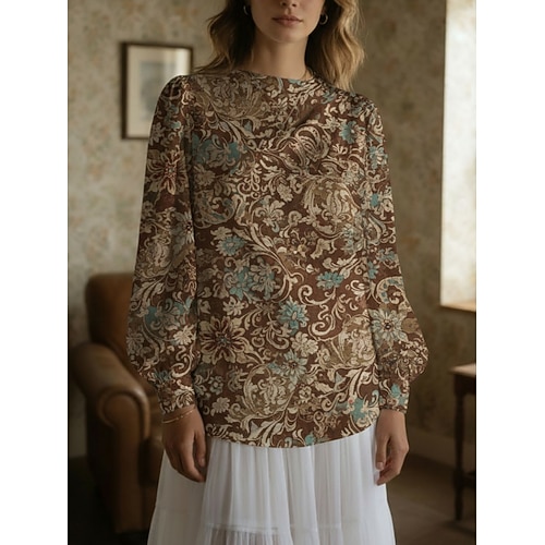 Per donna Camicia Camicia casual Blusa Stampato Floreale Grafico Bohemien Elegante Classico Manica Lunga Asimmetrico Top Regolari Quotidiano Ferie Uscire Blu Marrone chiaro Marrone Estate Primavera