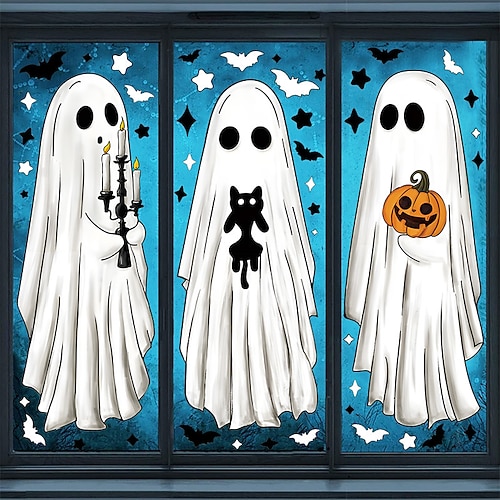 6 fogli di adesivi per finestre di Halloween, grandi fantasmi di Halloween, adesivi per finestre a doppia faccia con fantasmi spaventosi e pipistrelli, per decorazioni per feste, casa, ufficio e