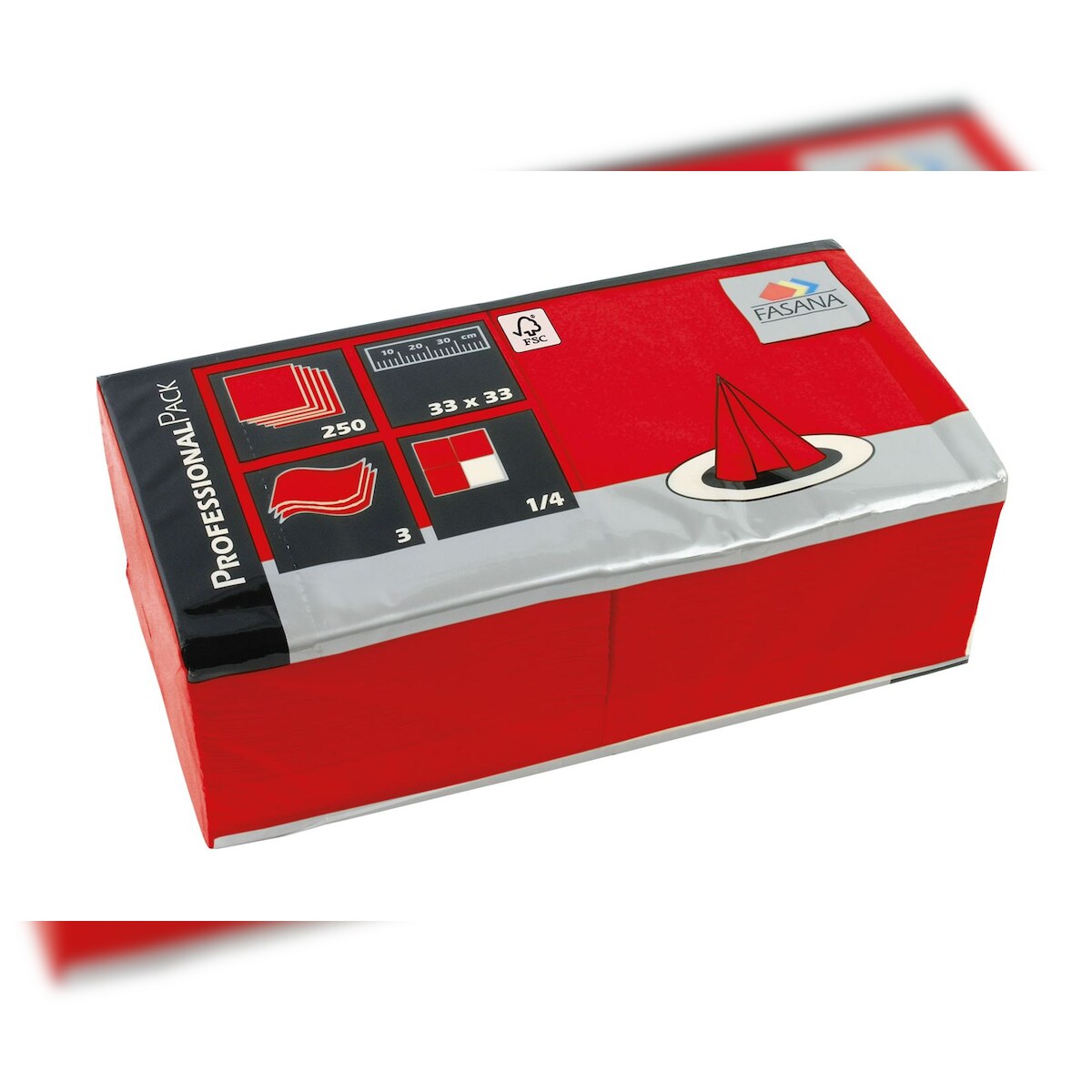 1000x Zelltuch-Servietten 33 x 33 cm 3-lagig 1/4 Falz rubinrot