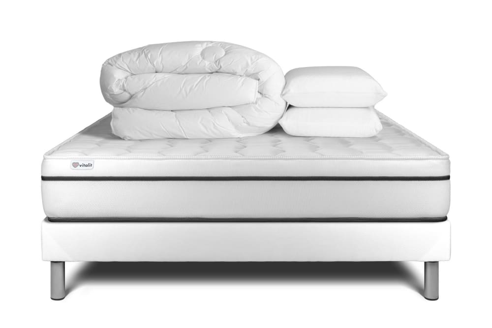 Pack sommier kit matelas Mémoire de forme 140x200 Blanc Complet