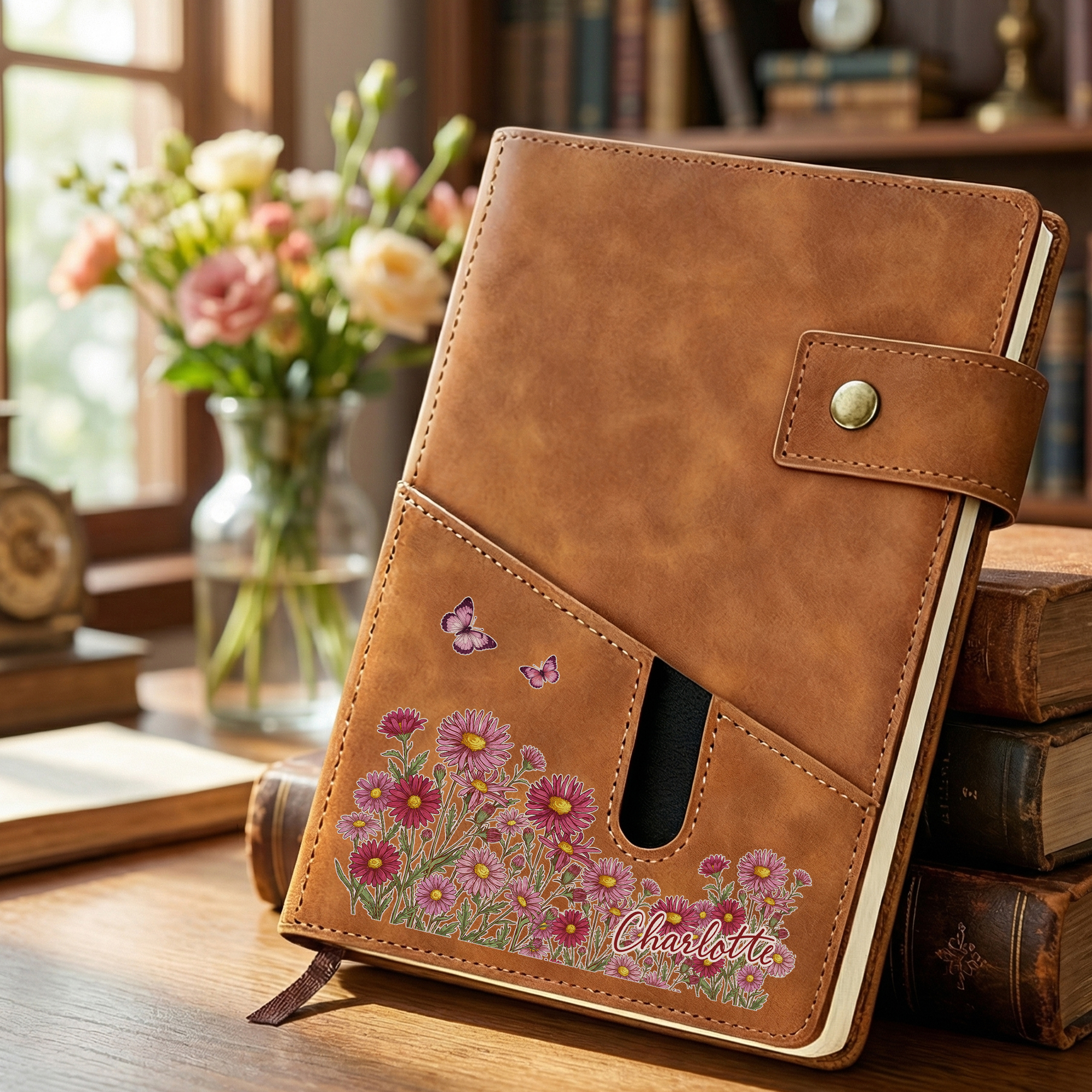 Cuaderno A5 personalizado con el nombre de la flor de nacimiento, bolsillo para guardar y páginas rayadas Esenciales diarios Cumpleaños Día de la Madre Regalo para mamá trabajadora de oficina