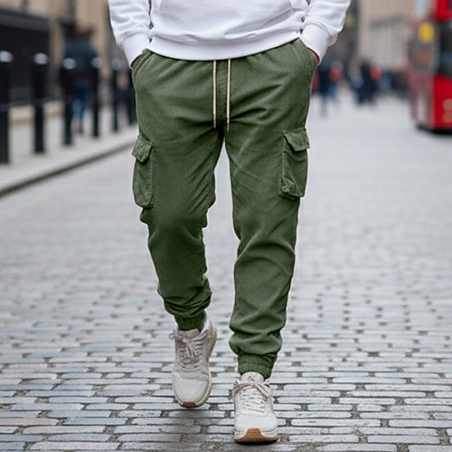 Per uomo Pantaloni Cargo Joggers Pantaloni Pantaloni in velluto a coste Pantaloni casual Coulisse Elastico in vita Multi-tasche Semplice Comodità Lunghezza intera All'aperto Casuale Quotidiano Moda