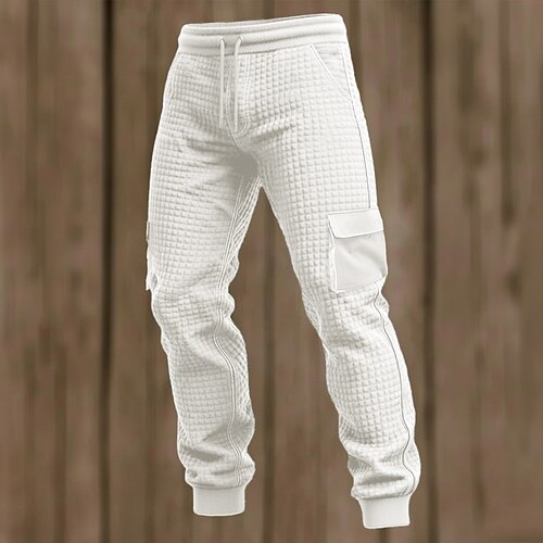 Per uomo Nido d'ape Pantaloni Cargo Joggers Pantaloni Pantaloni casual Tasca Elastico in vita Multi-tasche Semplice Comodità Lunghezza intera All'aperto Casuale Quotidiano Vacanza Moda Nero Bianco