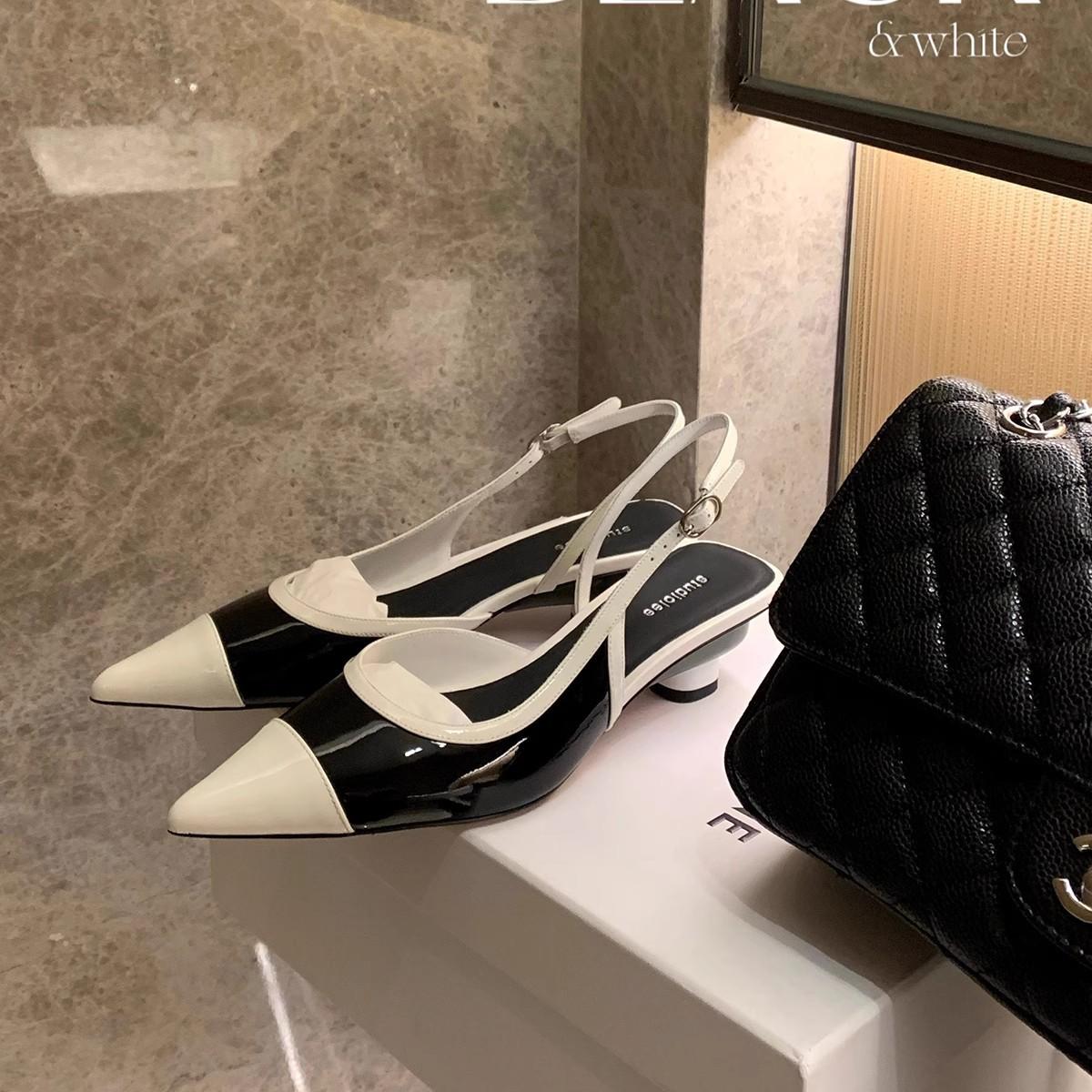 Grape mother has the same elegant small pointed head color matching bag head, empty sandals, thin low-heeled single shoes for commuting cm black