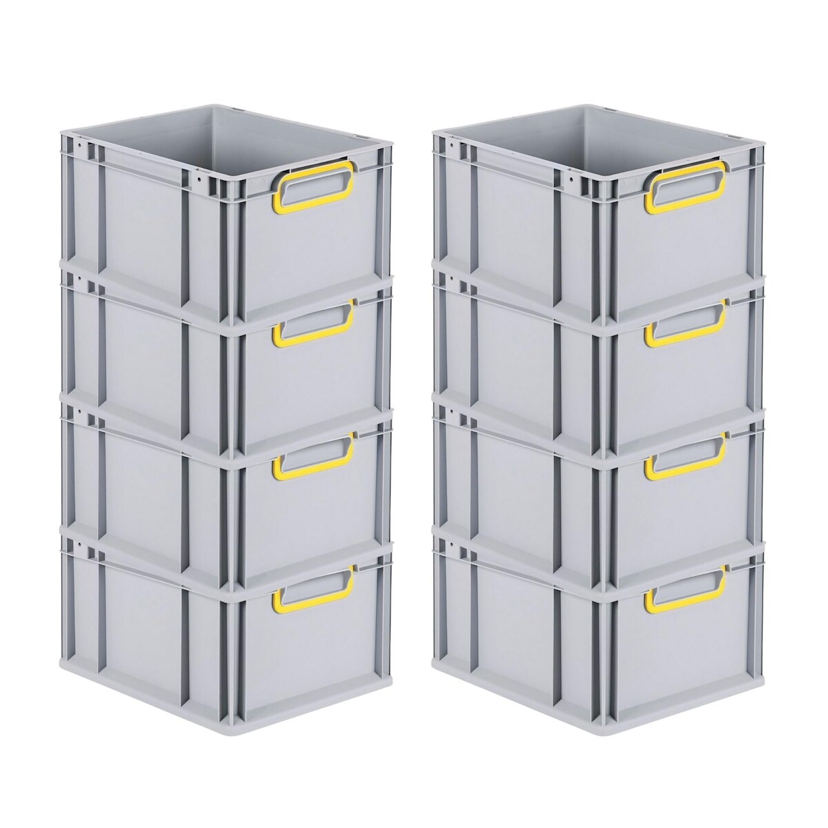 PROREGAL SuperSparSet 8x Eurobox NextGen Color, HxBxT 22x30x40cm, 20 Liter, Griffe gelb zu, Grau, Eurobehälter, Box, Transportbehälter