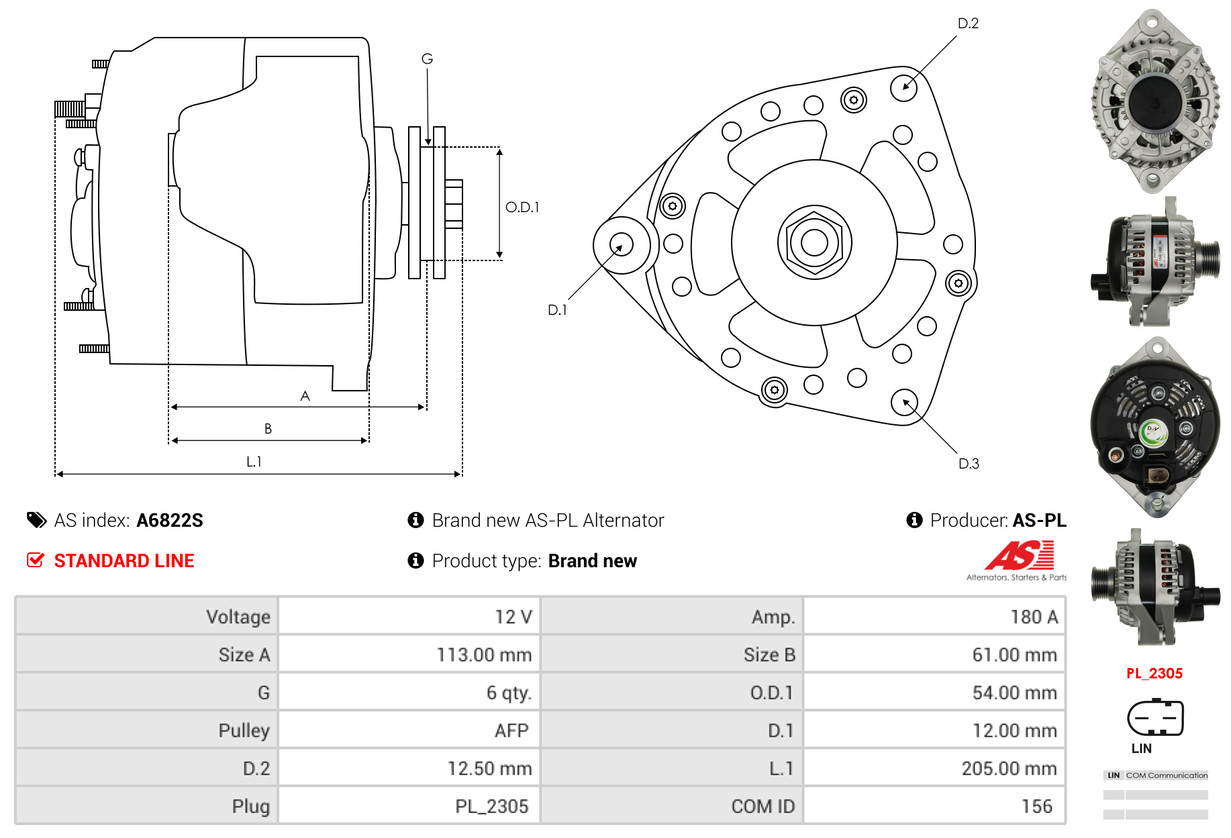 AS-PL Generator A6822S 12V 180A für ALFA ROMEO 50536692 71797220