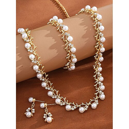 set di gioielli da donna in lega di perle finte – set composto da 3 pezzi: collana, bracciale e orecchini, perfetto per matrimoni e occasioni speciali