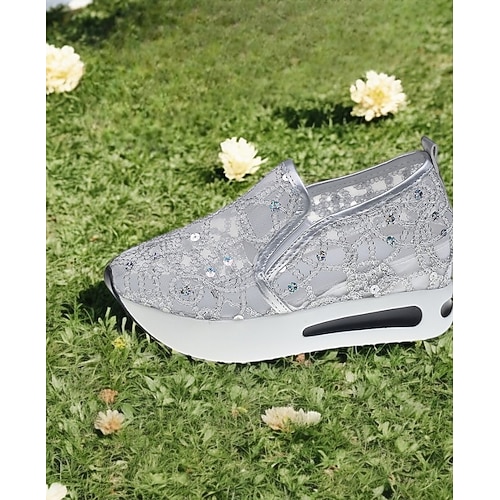 scarpe da ginnastica slip-on con plateau e lacci glitterati da donna: scarpe da passeggio eleganti e comode per invitati a matrimoni, feste e viaggi (oro/nero/argento/rosa/bianco)